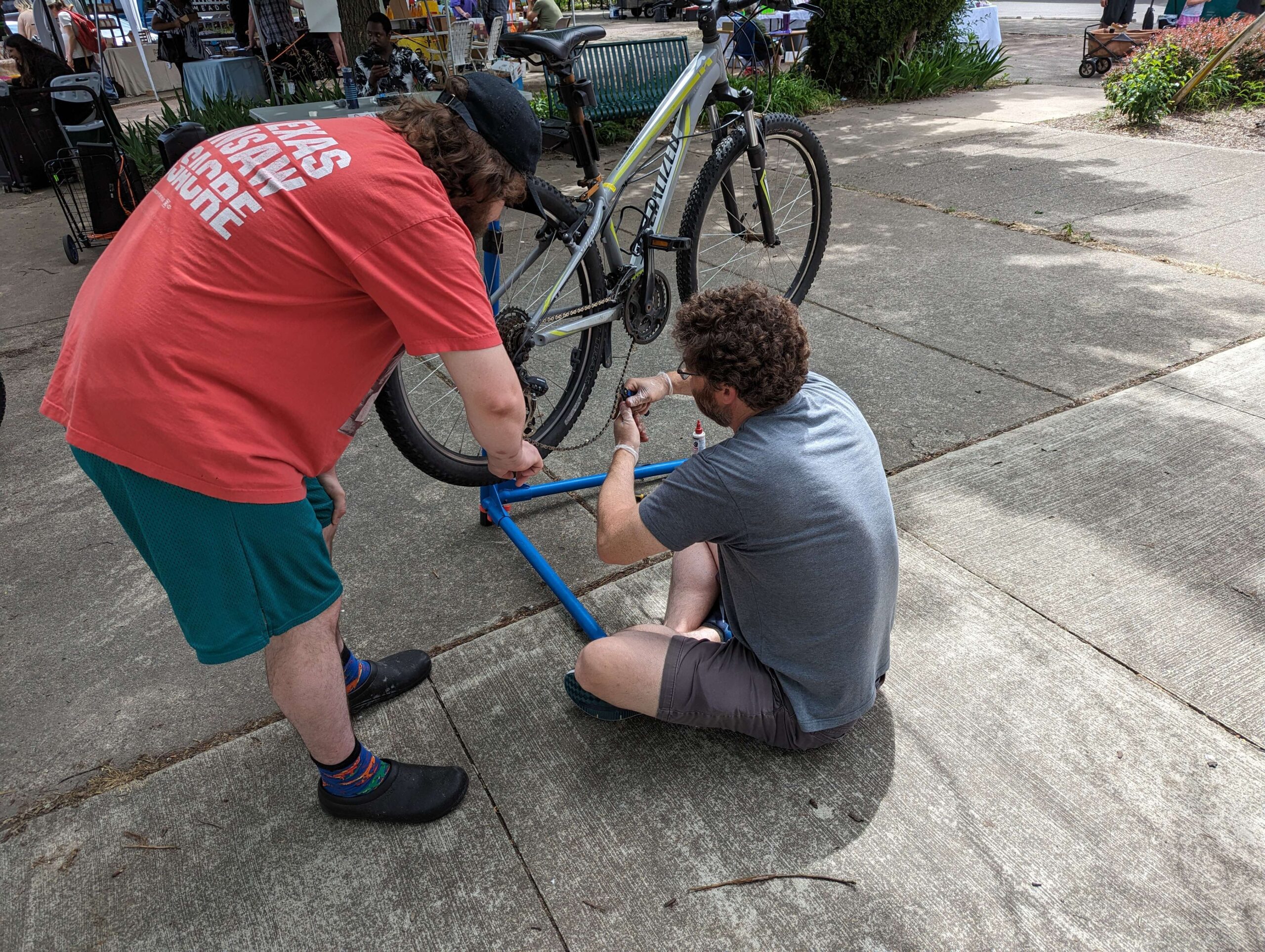 The Ypsi Bike Coop is a volunteer-run organization dedicated to keeping bicycles rolling in our community. Our volunteer mechanics provide free bike repairs and offer parts for the most common maintenance needs. While we don’t charge for our services, we do appreciate donations to help cover the cost of parts and support our work. All contributions go directly toward purchasing more bike parts to keep our efforts going. You can find us at the Ypsi Farmers Market three Saturdays each month, where we set up shop to assist cyclists in need of repairs. We’re also proud to support Pull Over Prevention (POP) in Ypsilanti, ensuring that local riders have safe and functional bikes. We usually have a few bicycles in need of a new home available upon request. Check our Events Calendar for dates, times and locations—we’d love to see you and help keep your bike in top shape!